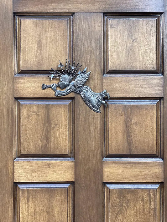 Angel Playing Horn, Metal Wall Decor, Recycled, 15" x 28"