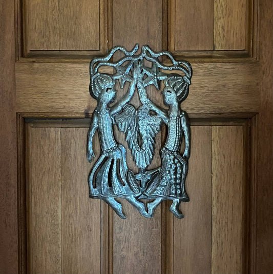 9" x 15" Twin Angels,Sisters, Bring Luck, Haitian Metal Art