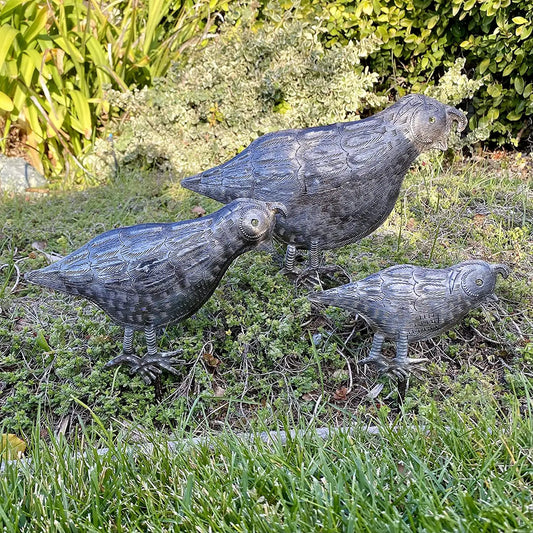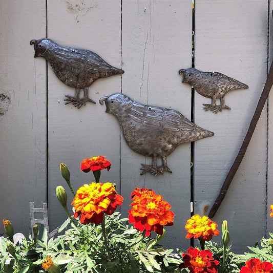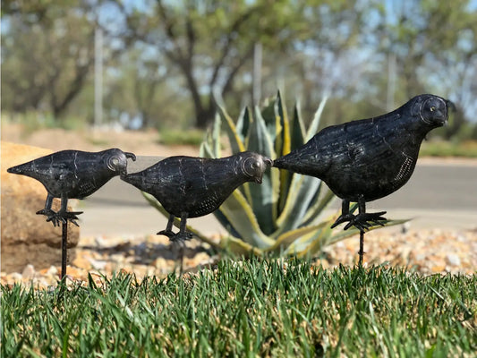 Set/3 Quail Garden Stakes, Yard Art, Handmade Fair-trade Decorative Patio Sculptures
