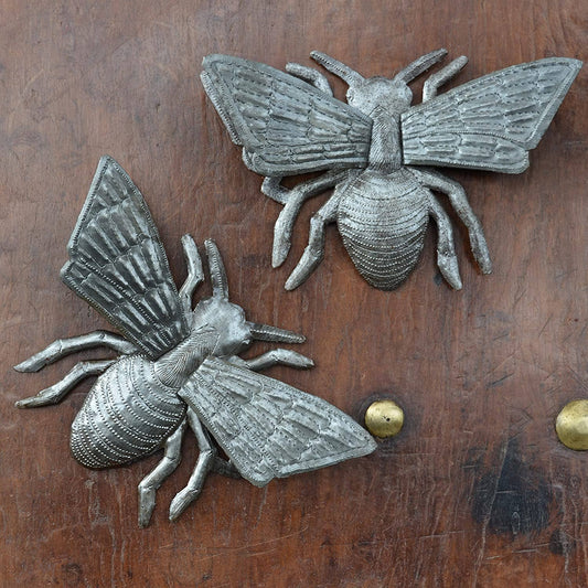 Garden Bee, Metal Wall Hanging Decorative Plaques, Handmade, Bug Ornaments, Haiti, Set of 2