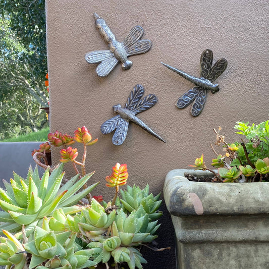6" Metal Dragonfly Art, Haiti Fair Trade Set of 3 Handmade Indoor Outdoor Haitian