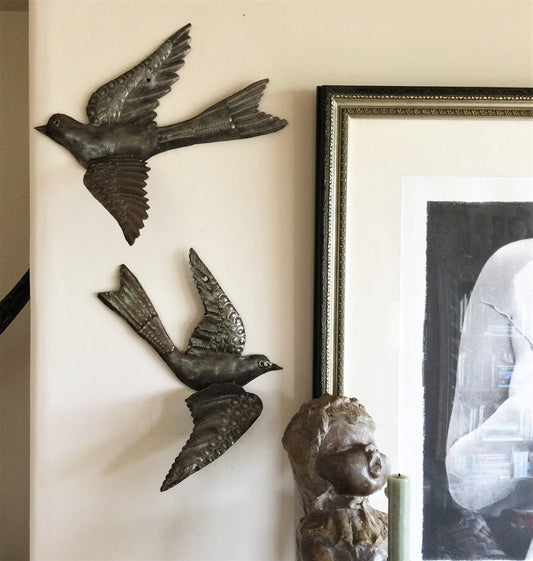 13" Set/2 Large Birds, 3D Wings, Home Garden Plaques, Handmade in Haiti, Wall Hanging