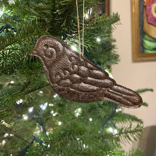 Bird Ornament, Hand Tooled Detail, Holiday Decor, Gift Giving, Haitian, Handmade