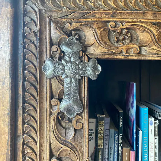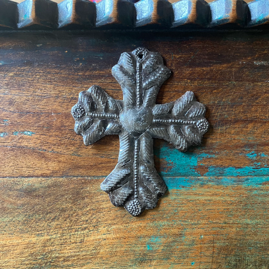 Recycled Metal Floral Cross, Milagro, Upcycled Art 5" x 7"