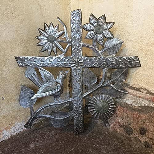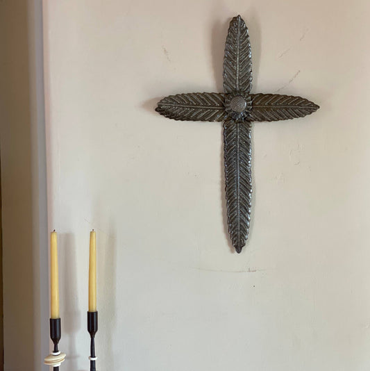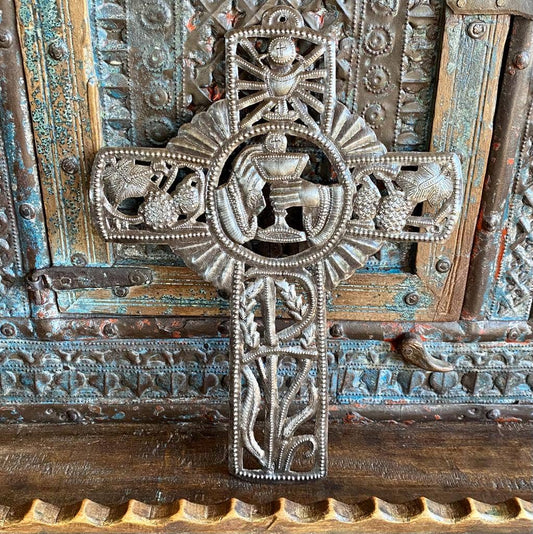 17" x 16" Haitian Metal Cross, Seasons, Fair Trade, Recycled