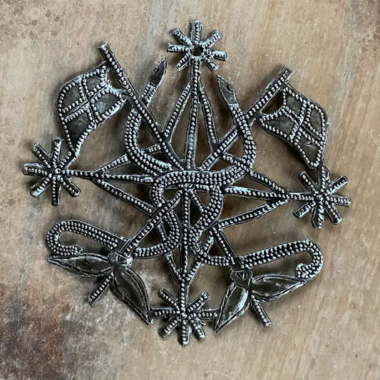 Haitian Art-inspired Veve Design, Freda Veve Heart, 4" Haiti, Ornament, Handmade, Unique Metal Ornaments