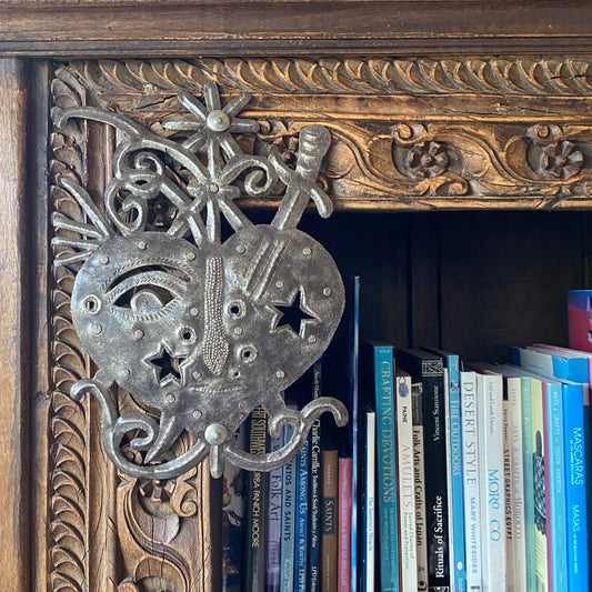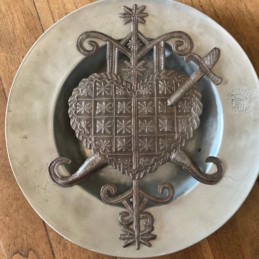 15" x 15" Voodoo Veve Heart and Sword, Artwork from Haiti, Unique Metal Wall Hanging