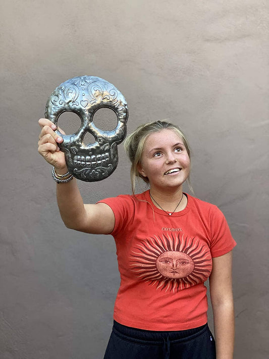 11.25" x 9.5" Day of Dead, Skull Metal Wall Hanging Haiti