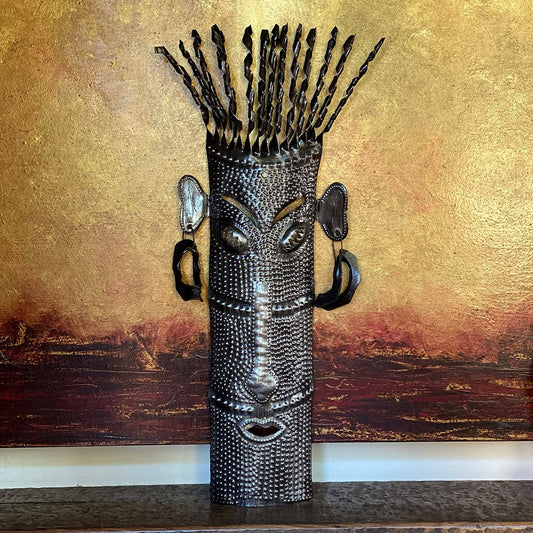 Tiki Bar Mask, Haiti Metal Wall Art 19.5" x 12" x 2.5"